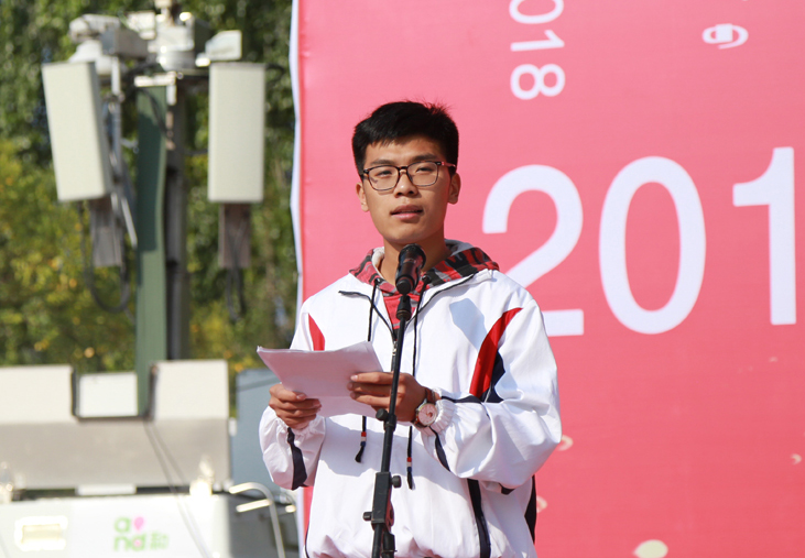 隨后,張佳文宣布了新生軍訓教官任命名單及軍訓連隊分組名單。學長代表吳志強同學、新生代表魏耀琦同學和教師代表于立坤老師依次作了熱情洋溢的發言。