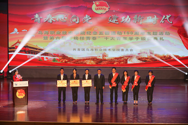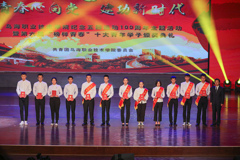 5月9日下午,“青春心向黨 建功新時代”烏海職業技術學院紀念五四運動100周年主題活動暨第六屆“榜樣青春”十大青年學子頒獎典禮隆重舉辦。學院黨委書記薛文,黨委副書記、院長牟占軍,黨委副書記、紀委書記、宣傳部長侯麗敏,黨委委員、副院長李峰、高雄文、趙秀平出席,團市委書記劉德翠出席。學院各職能部門負責人,各系黨總支、團總支書記,受表彰的先進個人和先進集體成員代表,以及千余名青年學生參加活動。