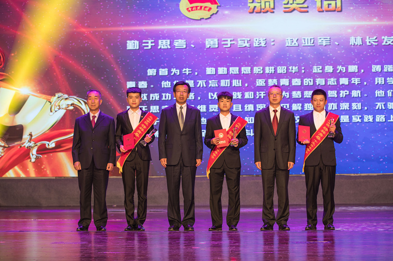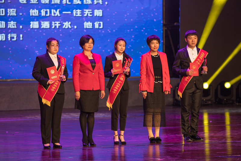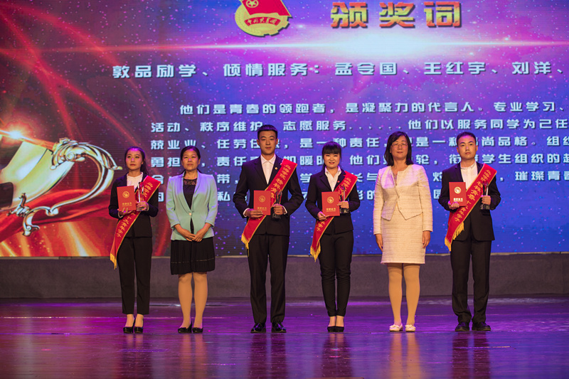 在第二個環節的第六屆“榜樣青春”十大青年學子頒獎典禮上,電力工程系張榮生,機電工程系趙亞軍、林長發,管理與旅游系國蓉、孟令國、王紅宇,建筑工程系劉洋,學前教育系張朵朵、薛棟,化學工程系楊娜依次走上臺,他們中有勵志成才、自強不息的典型,有勤于思考、勇于實踐的典型,有敦品勵學、傾情服務的典型......團市委書記劉德翠,學院黨委副書記、紀委書記、宣傳部部長侯麗敏,院黨委委員、副院長李峰、高雄文、趙秀平,院黨委委員、組織人事統戰處處長趙云平,紀檢監察處處長陳衛東分別為獲獎同學頒獎。現場還通過視頻短片的形式展示了十位獲獎者的勵志故事。