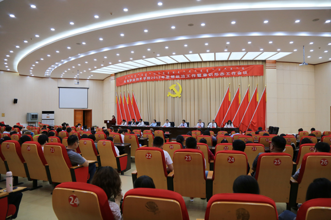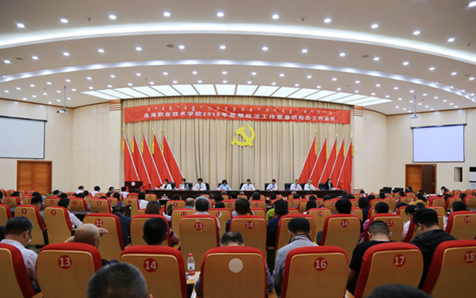 5月21日下午,烏海職業技術學院召開2019年思想政治工作暨意識形態工作會議。這次會議既是一次工作部署會,又是一次全院性的專題培訓會。會議旨在深入學習貫徹習近平新時代中國特色社會主義思想,認真落實全國教育大會精神,回顧總結2018年思想政治工作和意識形態工作,分析研判當前面臨的形勢,部署2019年工作,為切實提升全院上下思想政治工作與意識形態工作能力和水平,實現我院高質量發展提供堅強的政治保證。