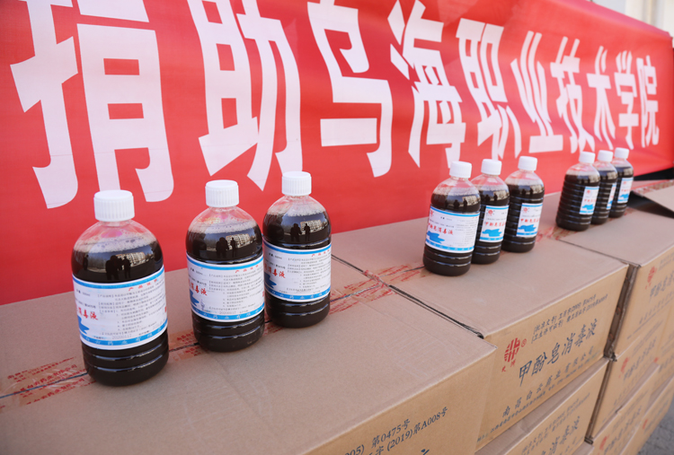3月20日上午,烏海市國安醫(yī)藥公司代表來到我院,為支持春季學(xué)期開學(xué)前后的新冠肺炎疫情防控消殺物資儲備,保障學(xué)生的正常學(xué)習(xí)生活,特捐贈600瓶甲酚皂消毒液,總價值5400元。(陳宇)