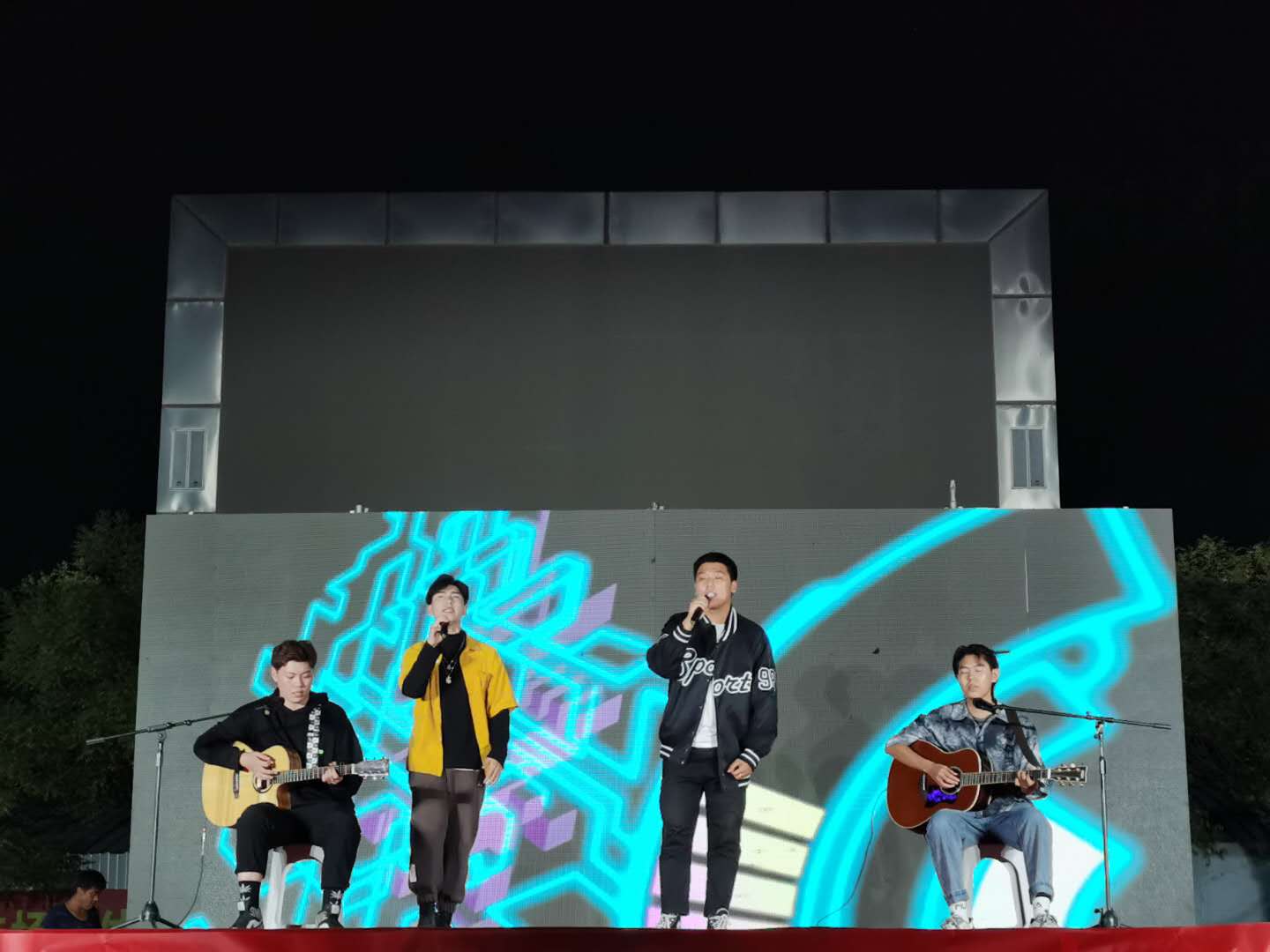 演出在新蜜蜂樂隊演唱的《曾經的你》《藍蓮花》中拉開帷幕。緊接著,《梨花又開放》《海闊天空》《紅日》等民歌串燒帶領現場的同學們致敬經典民謠。演出現場動感的音樂效果,觀眾們的歡呼聲、雀躍聲,現場氣氛高潮迭起。學生們伴隨著歌聲揮舞著閃光燈,表達著對偉大祖國繁榮富強的祝福,對母校蒸蒸日上的祝愿,以及在即將到來的中秋佳節對家鄉親人的思念。